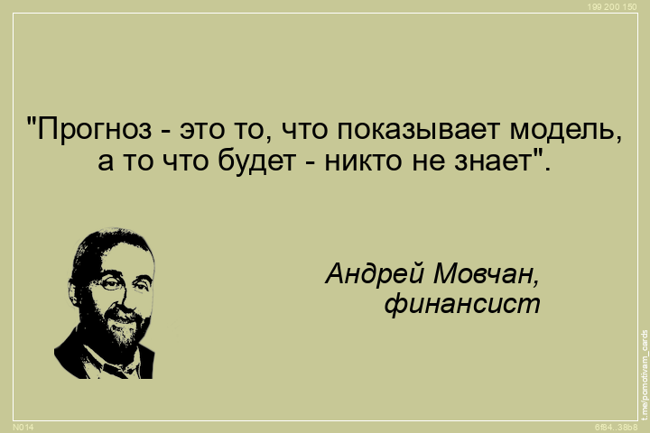 "text": "\"Прогноз - это то, что показывает модель,\nа то что будет - никто не знает\".",