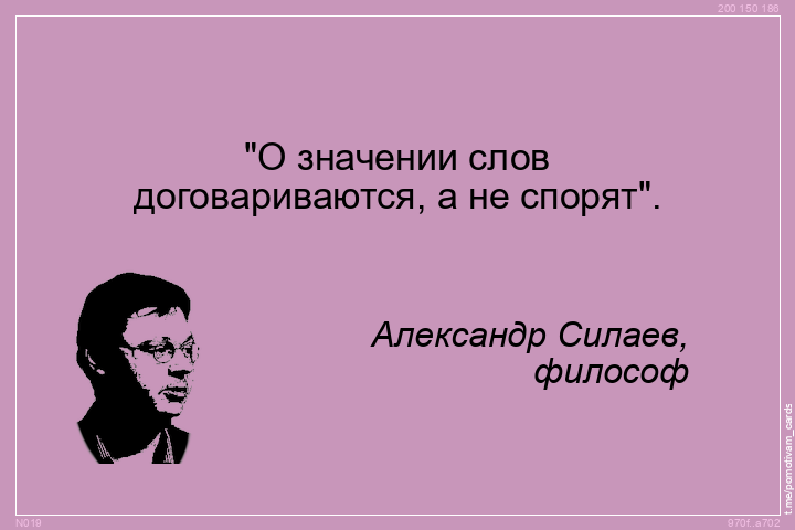 "text": "\"О значении слов\nдоговариваются, а не спорят\".",