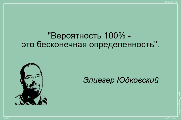 "text": "\"Вероятность 100% - \nэто бесконечная определенность\".",