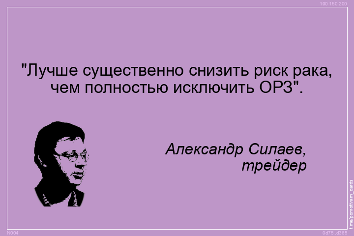 "text": "\"Лучше существенно снизить риск рака,\nчем полностью исключить ОРЗ\".",